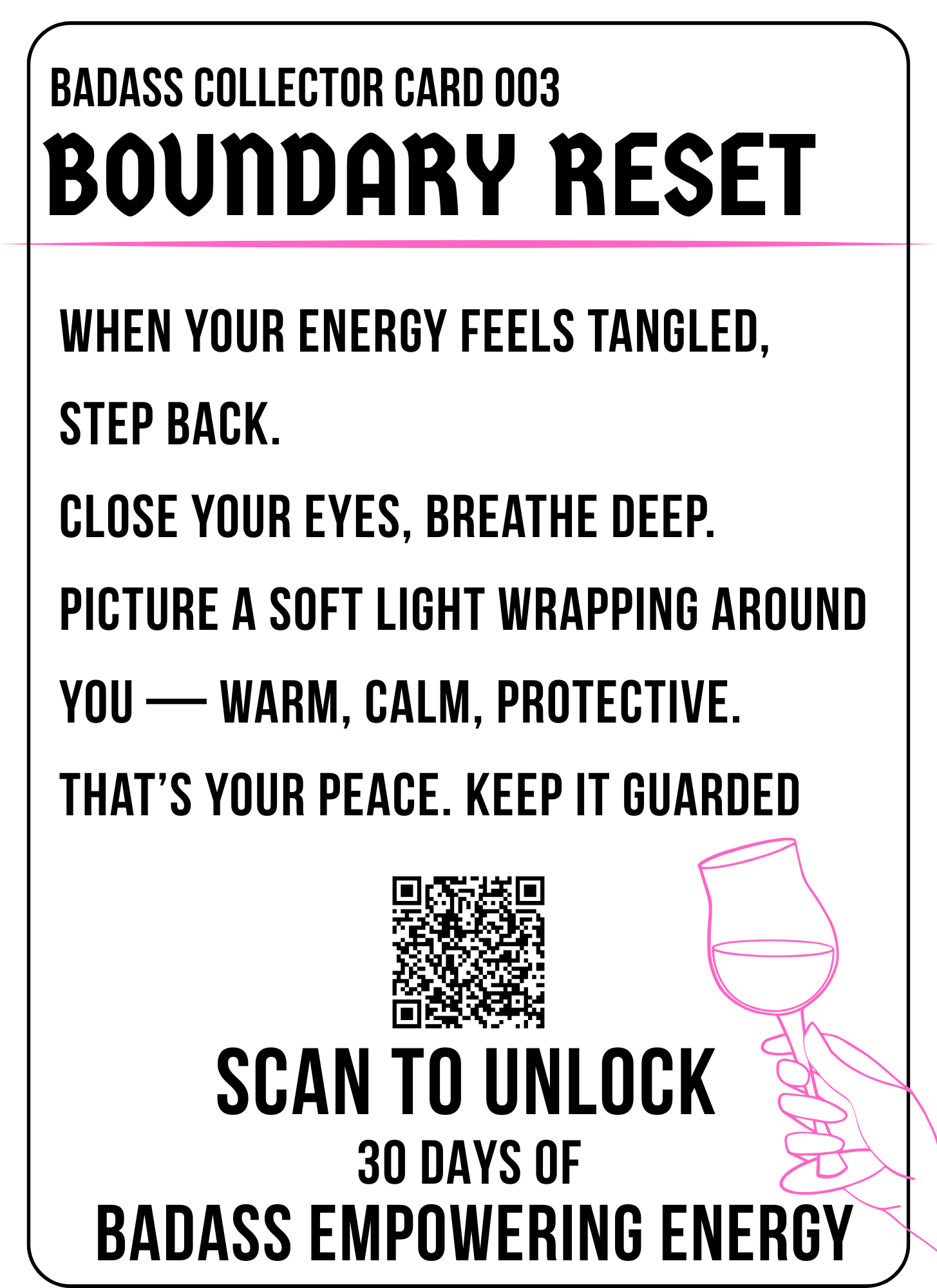 Scan the QR code on the card to unlock 30 rotating digital badass affirmations, revealing a new message every time you scan. It’s your daily reminder to stay bold, confident, and unbothered.
